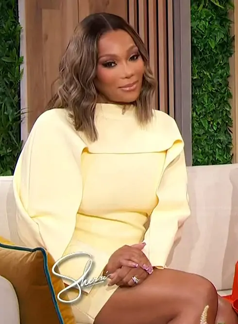 on Sherri on FOX was spotted wearing this yellow mini cape dress on Sherri on Mar 23 2026's episode. 's Dress is the Almina Dress by Cult Caia.
