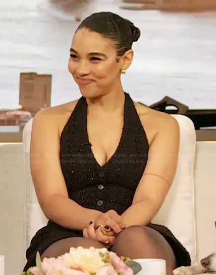 Leo Lin Jessie Halterneck Mini Dress worn by Alexandra Shipp on The Drew Barrymore Show