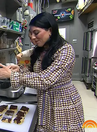 on Today on NBC was spotted wearing this brown check embroidered dress on Today on Mar 24 2026's episode. 's Dress is the Véronique Dress in Lila Brown Gingham Embroidery by Sezane.