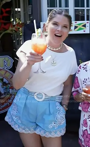 Jenna Bush Hager on Today on NBC was spotted wearing this blue embroidered belted shorts on Today on Mar 26 2026's episode. Jenna's Shorts is the Floral-embroidered Belted Shorts by Farm Rio.