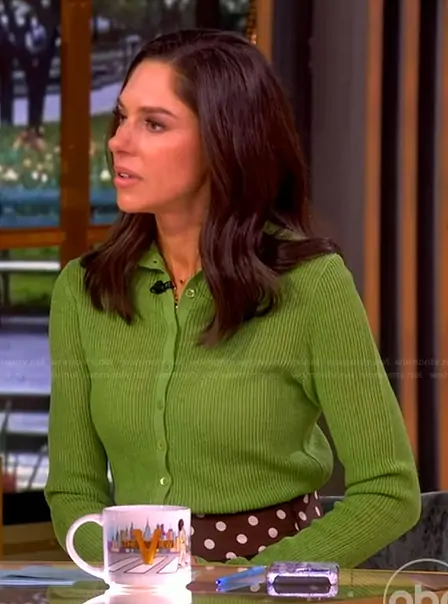 Abby Huntsman on The View on ABC was spotted wearing this green cardigan on The View on Mar 26 2026's episode. Abby's Sweater is the Marianne Sweater by Staud.