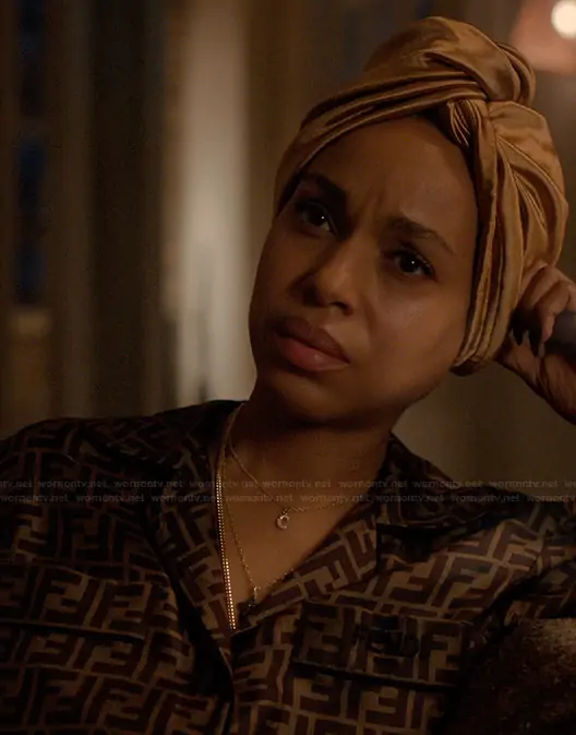 Eleanor (played by Kerry Washington) on Imperfect Women on Apple was spotted wearing this brown fendi logo pajamas on Imperfect Women on episode 'Eleanor' (1x01) in Mar 2026. Eleanor's Pajamas is the Silk Printed Pajamas by Fendi.