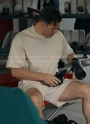 Eddie Diaz (played by Ryan Guzman) on 9-1-1 on ABC was spotted wearing this ivory tee and shorts on 9-1-1 on episode 'Pick Your Poison' (9x15) in Mar 2026. Eddie's Shirt is the Soft Lux Tee in Crystal Linen by Adidas . Eddie's Shorts is the Soft Lux Shorts in Crystal Linen by Adidas . Eddie's Shoes is the Nike Air Huarache Runner Sneakers in Cargo Khaki/Medium Olive by Nike.