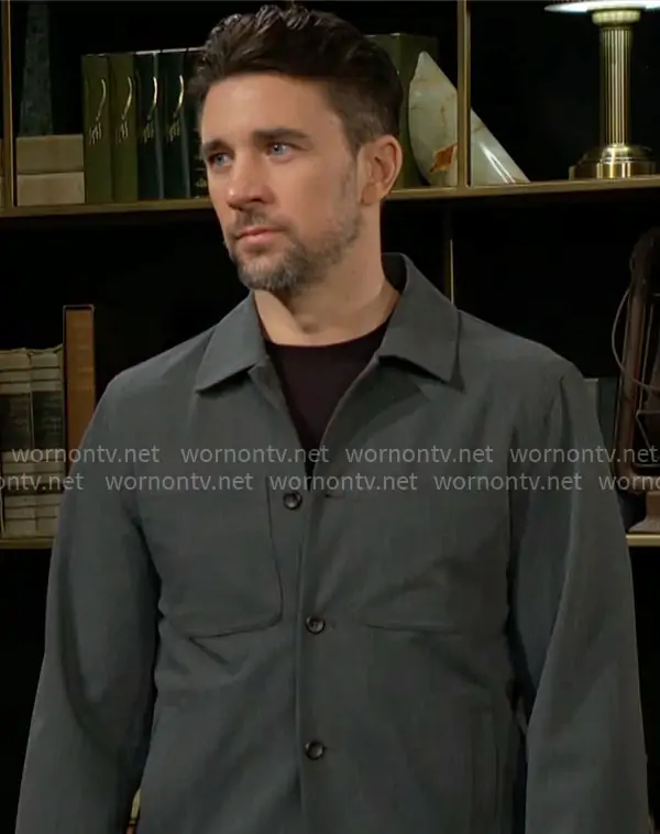 Cane Ashby (played by Billy Flynn) on The Young and the Restless on CBS was spotted wearing this grey shirt jacket on The Young and the Restless on Mar 27 2026's episode. Cane's Jacket is the Marseille Texture Jacket by Les Deux.