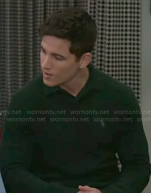 Bradley 'Smitty' Smith (played by Mike Manning) on Beyond the Gates on CBS was spotted wearing this green polo sweater on Beyond the Gates on Mar 30 2026's episode. Smitty's Sweater is the Wool-Cashmere Polo-Collar Sweater by Polo Ralph Lauren.