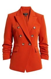 Rachel Scott on Good Morning America on ABC was spotted wearing this orange double breasted blazer on Good Morning America on Mar 30 2026's episode. Rachel's Jacket is the Ruched Sleeve Jacket in Persimmon by Tahari ASL.