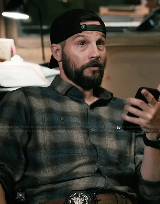 Pete Calvin (played by Logan Marshall-Green) on Marshals on Paramount was spotted wearing this blue plaid shirt on Marshals on episode 'Piya Wiconi' (1x01) in Mar 2026. Cal's Shirt is the Flannel Cotton Long Sleeve Shirt by Kuhl.