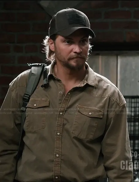 Kayce Dutton (played by Luke Grimes) on Marshals on Paramount was spotted wearing this brown button down shirt on Marshals on episode 'Zone of Death' (1x02) in Mar 2026. Kayce's Shirt is the Ranger Colored Denim Snap Shirt In Tortora by Axel's.