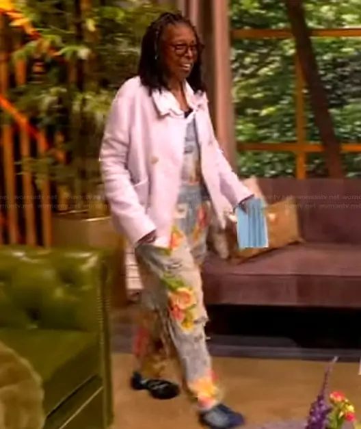 Whoopi Goldberg on The View on ABC was spotted wearing this floral overalls and jacket on The View on Apr 01 2026's episode. Whoopi's Overalls is the Rose Embroidered Overalls by Magnolia Pearl . Whoopi's Jacket is the Mini Belfast Jacket by Frank and Eileen.
