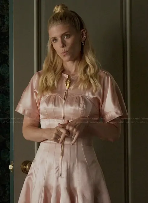 Nancy (played by Kate Mara) on Imperfect Women on Apple was spotted wearing this pink zip front dress on Imperfect Women on episode 'Nancy' (1x04) in Apr 2026. Nancy's Dress is the Long Dress by Schiaparelli . Nancy's Shoes is the Larmina Dress Sandals by INC International Concepts.