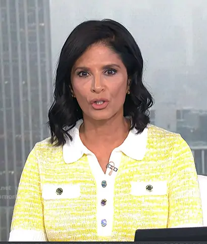 Darlene Rodriguez on Today on NBC was spotted wearing this yellow knit polo dress on Today on Apr 02 2026's episode. Darlene's Dress is the Theodorah Polo Sweater Dress in Estelle Yellow Metallic Marl by Lilly Pulitzer.