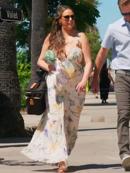 Kristen Doute on The Valley on Bravo was spotted wearing this white floral print maxi dress on The Valley on episode 'You Can't Sip With Us' (3x01) in Apr 2026. Kristen's Dress is the Emese Pleated Maxi Sundress by ASTR the Label.