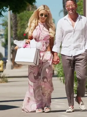 Lacy Nicole on The Valley on Bravo was spotted wearing this pink abstract print maxi dress on The Valley on episode 'You Can't Sip With Us' (3x01) in Apr 2026. 's Dress is the Rosette Maxi Dress by Cin Cin.