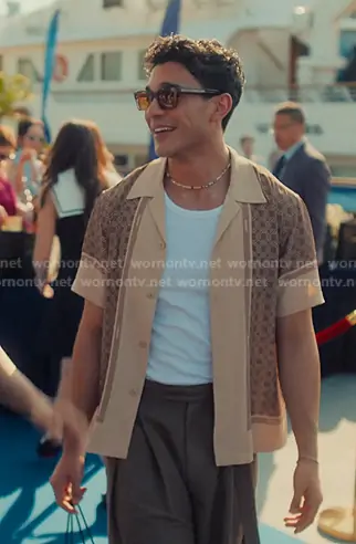 Quincy Shabazian (played by Anthony Keyvan) on XO Kitty on netflix was spotted wearing this beige printed short sleeve shirt on XO Kitty on episode 'Guest List' (3x01) in Apr 2026. Q's Shirt is the Short Sleeved Patterned Shirt in Hazel by Sandro.