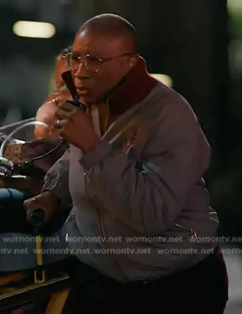 Henrietta Wilson (played by Aisha Hinds) on 9-1-1 on ABC was spotted wearing this grey bomber jacket on 9-1-1 on episode 'Where There's Smoke' (9x16) in Apr 2026. Hen's Jacket is the Logo bomber jacket by JW Anderson.