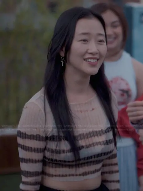 Yuri Han (played by Gia Kim) on XO Kitty on netflix was spotted wearing this stripe distressed sweater on XO Kitty on episode 'Sunset List' (3x02) in Apr 2026. Yuri's Sweater is the Boat Neck Striped Washed Mariniere Cropped Top by Jean Paul Caultier.