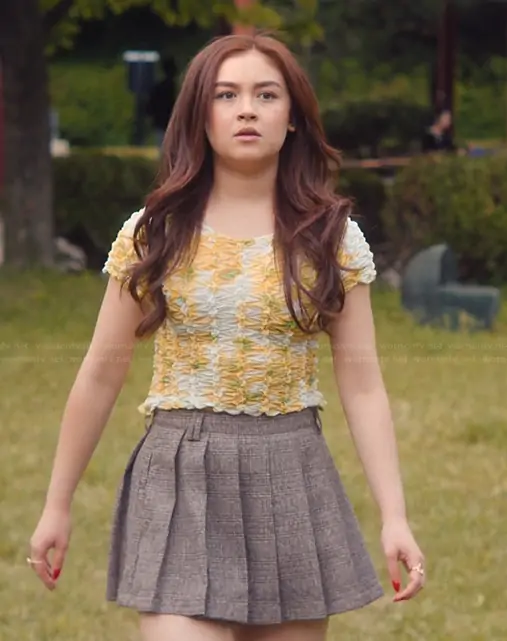 Katherine Song-Covey (played by Anna Cathcart) on XO Kitty on netflix was spotted wearing this floral ruffle top on XO Kitty on episode 'Sunset List' (3x02) in Apr 2026. Kitty's Top is the Floral Applique Top by Ponder.Er . Kitty's Shoes is the Gwendolyn Penny Loafers by Cole Haan.