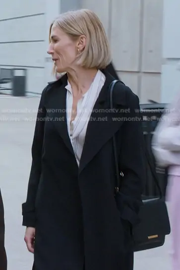 Dr. Toni Wright (played by Jen Landon) on Greys Anatomy on ABC was spotted wearing this black coat on Greys Anatomy on episode 'Feel It Still' (22x16) in Apr 2026. 's Coat is the Oaklane Admiral Crepe Trench Coat by Theory . 's Bag is the Crossbody Bag with Metal Detail by Zara.