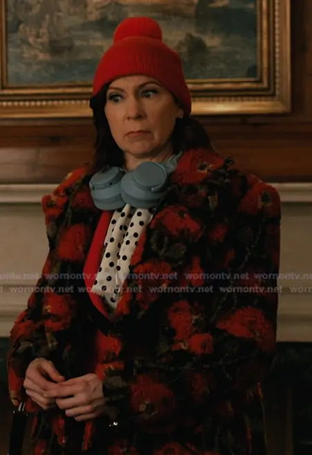 Elsbeth Tascioni (played by Carrie Preston) on Elsbeth on CBS was spotted wearing this floral sherpa coat on Elsbeth on episode 'Deadutante' (3x14) in Apr 2026. Elsbeth's Coat is the Tristan Sherpa Midi Coat by L'Agence.