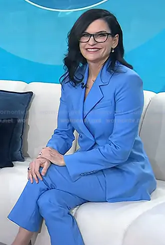 on Today on NBC was spotted wearing this blue double breasted blazer and pants on Today on Apr 06 2026's episode. 's Jacket is the Amos Dickey Jacket in Blue Jasper by Veronica Beard . 's Pants is the Kean Slim-Leg Pant in Blue Jasper by Veronica Beard.