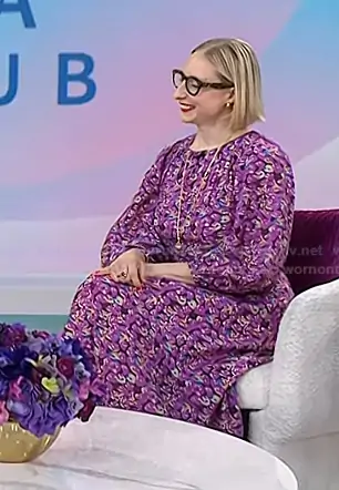 on Today on NBC was spotted wearing this purple floral long sleeve dress on Today on Apr 06 2026's episode. 's Dress is the Isa Dress in Florette Peony by Apiece Apart.