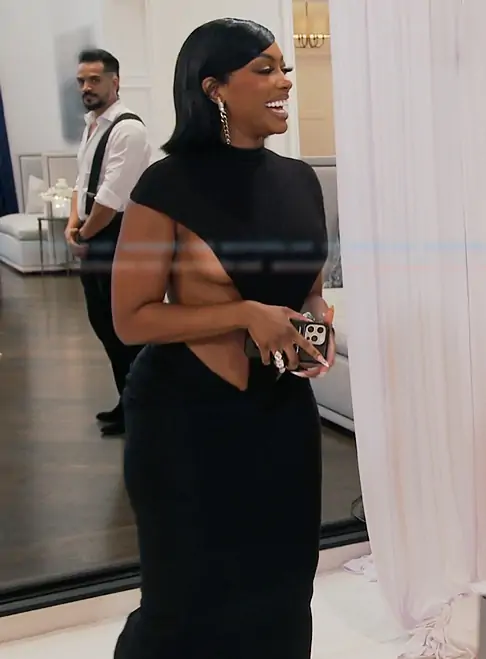 Porsha Williams on The Real Housewives of Atlanta on Bravo was spotted wearing this black bodysuit and skirt on The Real Housewives of Atlanta on episode 'A Warm Welcome' (17x01) in Apr 2026. Porsha's Bodysuit is the Triangular Bodysuit by LaQuan Smith . Porsha's Skirt is the Low-rise midi skirt by LaQuan Smith.
