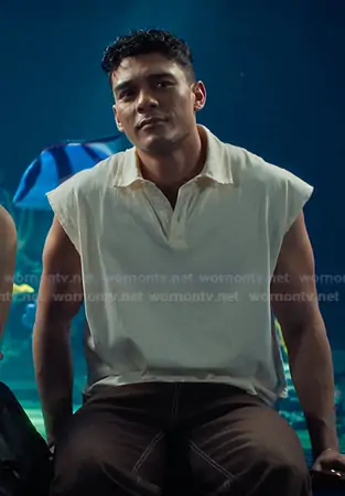 Quincy Shabazian (played by Anthony Keyvan) on XO Kitty on netflix was spotted wearing this ivory polo shirt on XO Kitty on episode 'Play List' (3x03) in Apr 2026. Q's Shirt is the Cutoff Raw Hem Polo Shirt by BDG.