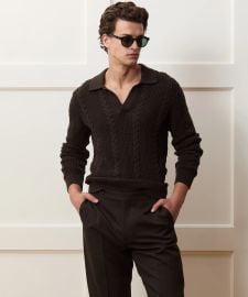 Sweater: Beechwood Cable Knit Sweater Polo in Caviar by Todd Snyder