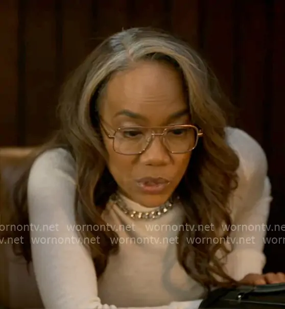 Amanda Wagner (played by Sonja Sohn) on Will Trent on ABC was spotted wearing this white chain detail sweater on Will Trent on episode 'A Flag in the Mud' (4x14) in Apr 2026. Amanda's Sweater is the Falabella Chain-embellished Wool Sweater In White by Stella McCartney.