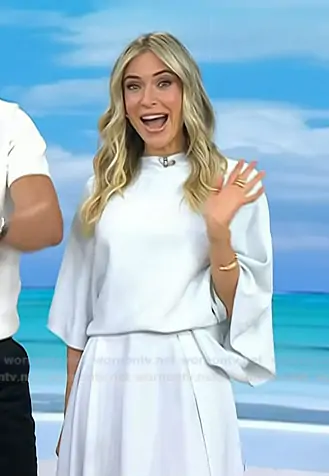 on Today on NBC was spotted wearing this light blue draped dress on Today on Apr 08 2026's episode. 's Dress is the Short Sleeve Midi Dress inMenthe Pastel by Alaia.