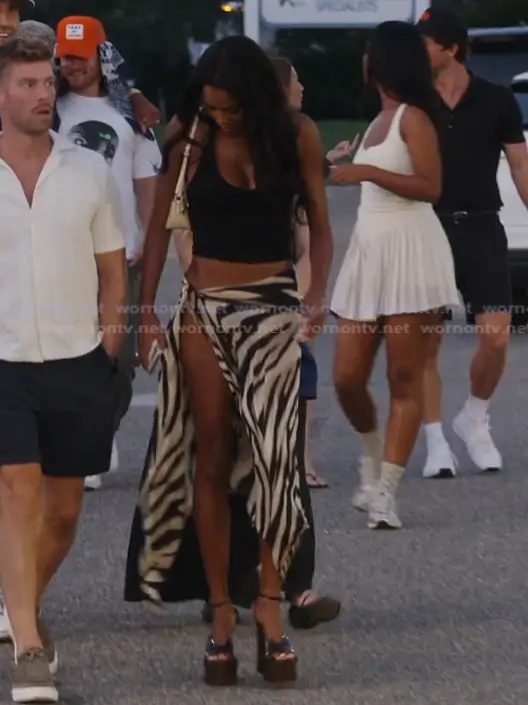 Ciara Miller on Summer House on Bravo was spotted wearing this black halter top on Summer House on episode 'Tee Time' (10x10) in Apr 2026. Ciara's Top is the V Neck Racerback Tank by Joah Brown . Ciara's Shoes is the Tiger Lilly Brown by Naked Wolfe.