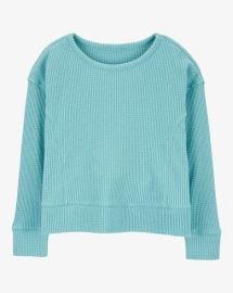 Top: Kid Waffle Knit Waffle Knit Long-Sleeve Tee in Teal by Carter's