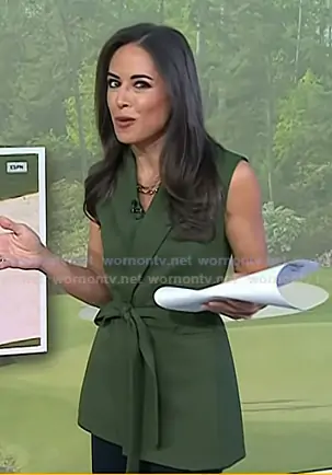 Kaylee Hartung on Today on NBC was spotted wearing this green sleeveless wrap jacket on Today on Apr 09 2026's episode. Kaylee's Vest is the Double-Breasted Vest in Seasonless Wool Olive by Argent.