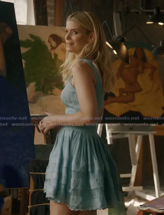 Nancy (played by Kate Mara) on Imperfect Women on Apple was spotted wearing this blue knit mini dress on Imperfect Women on episode 'Louise' (1x05) in Apr 2026. Nancy's Dress is the Open-knit minidress by Alaia.