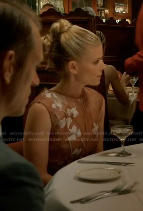 Nancy (played by Kate Mara) on Imperfect Women on Apple was spotted wearing this pink floral organza mini dress on Imperfect Women on episode 'Louise' (1x05) in Apr 2026. Nancy's Dress is the 2008 Hand Painted Floral Organza Dress by Dolce & Gabbana.