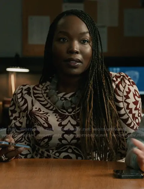Evangeline (played by Veronica Otim) on Elsbeth on CBS was spotted wearing this floral print crop top on Elsbeth on episode 'Otherwise Enraged' (3x15) in Apr 2026. 's Top is the Pineapple Love Knit Top by FARM Rio.