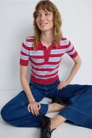 Lori Bergamotto on Good Morning America on ABC was spotted wearing this red stripe polo top on Good Morning America on Apr 10 2026's episode. Lori's Top is the Emma Polo Top by Aknvas.