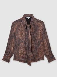 Top: Naomi Crocodile-Print Tie-Neck Blouse by Reiss