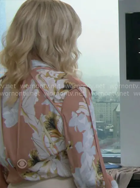 Brooke Logan (played by Katherine Kelly Lang) on The Bold and the Beautiful on CBS was spotted wearing this pink floral blouse on The Bold and the Beautiful on Apr 11 2026's episode. Brooke's Top is the Maggie Blouse by Reiss.