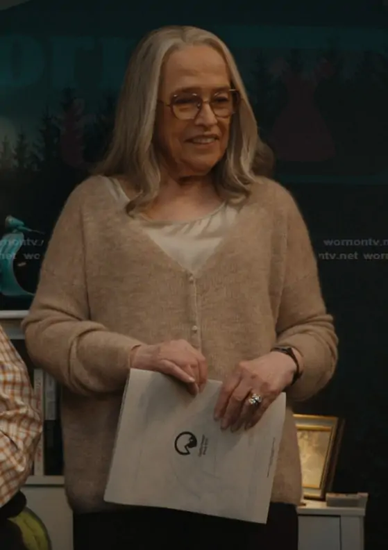 Madeline Matlock (played by Kathy Bates) on Matlock on CBS was spotted wearing this beige knit cardigan on Matlock on episode 'The Future Is Nigh' (2x13) in Apr 2026. Madeline's Sweater is the Barry Cardigan by Sezane.