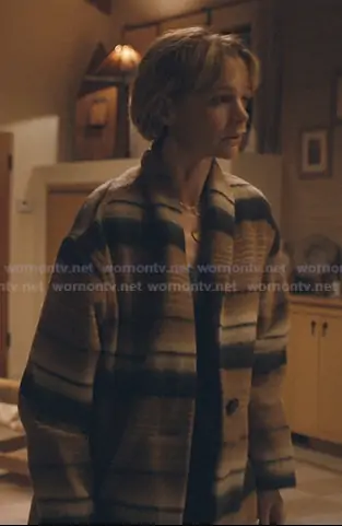 Lindsay Crane-Martín (played by Carey Mulligan) on Beef on Netflix was spotted wearing this brown striped coat on Beef on episode 'The Increasing Flimsiness of Any Certainties About the Future' (2x03) in Apr 2026. Lindsay's Coat is the Daby Coat in Camel by Isabel Marant Étoile.