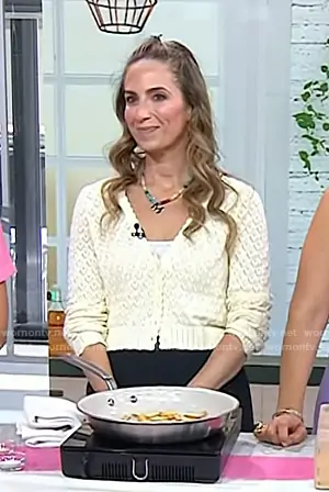 LoveShackFancy Janie Cropped Cardigan in Cream worn by Melissa Ben-Ishay on Today