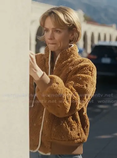 Lindsay Crane-Martín (played by Carey Mulligan) on Beef on Netflix was spotted wearing this mustard sherpa jacket on Beef on episode 'I Am Killing My Flesh Without It' (2x05) in Apr 2026. Lindsay's Jacket is the The Blackbird Jacket by The Great.
