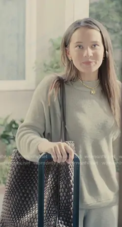 Ashley Miller (played by Cailee Spaeny) on Beef on Netflix was spotted wearing this brown woven tote bag on Beef on episode 'The Hour of Separation' (2x07) in Apr 2026. Ashley's Bag is the The Hollace Tote Woven Edition in Brown by Anthropologie.