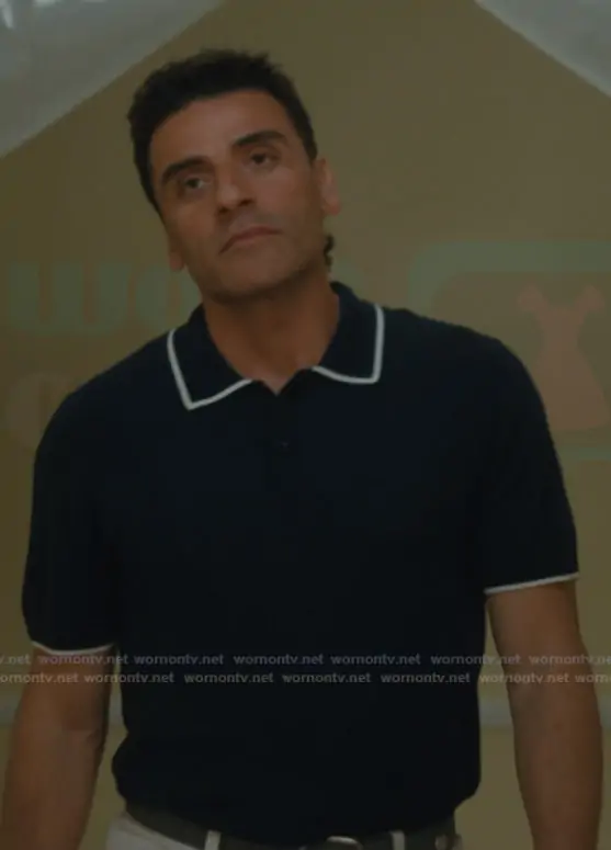 Joshua Martín (played by Oscar Isaac) on Beef on Netflix was spotted wearing this navy contrast trim polo on Beef on episode 'The Hour of Separation' (2x07) in Apr 2026. Josh's Shirt is the Cotton Piqué Polo Shirt by Sandro.