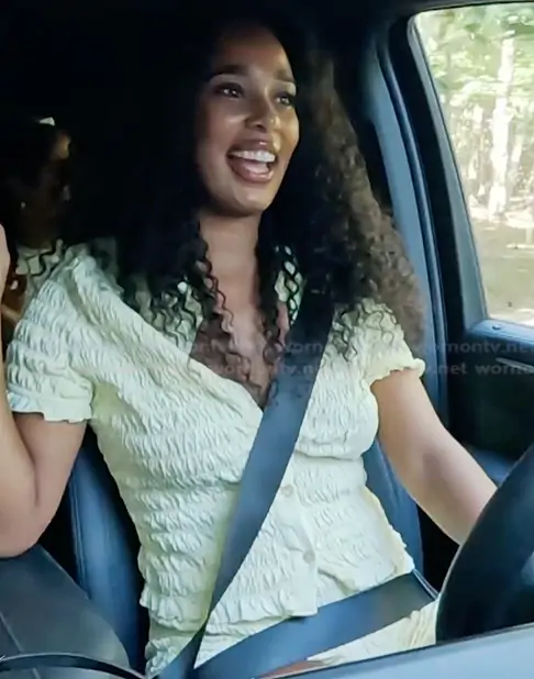 Mia Calabrese on Summer House on Bravo was spotted wearing this yellow shirred top and short set on Summer House on episode 'Boys of Summer' (10x12) in Apr 2026. Mia's Top is the Shirred detail micro shirt co-ord in washed cream by ASOS . Mia's Shorts is the Shirred detail micro shorts in washed cream by ASOS.
