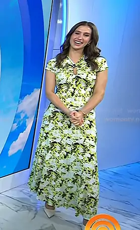 on Today on NBC was spotted wearing this yellow printed keyhole dress on Today on Apr 22 2026's episode. 's Dress is the Noelani Jersey Dress by Proenza Schouler White Label.
