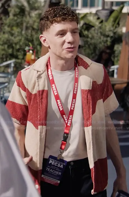 Jacob Hill (played by Chris Perfetti) on Abbott Elementary on ABC was spotted wearing this abstract print shirt on Abbott Elementary on episode 'Miami' (5x22) in Apr 2026. Jacob's Shirt is the Amber Dune Terry Cloth Camp Shirt by OAS.