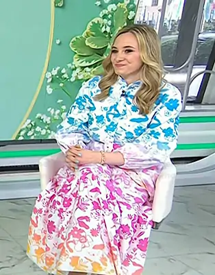 on Today on NBC was spotted wearing this multicolor floral shirtdress on Today on Apr 24 2026's episode. 's Dress is the Maria Dress in Tropical Bloom by The House of Perna.