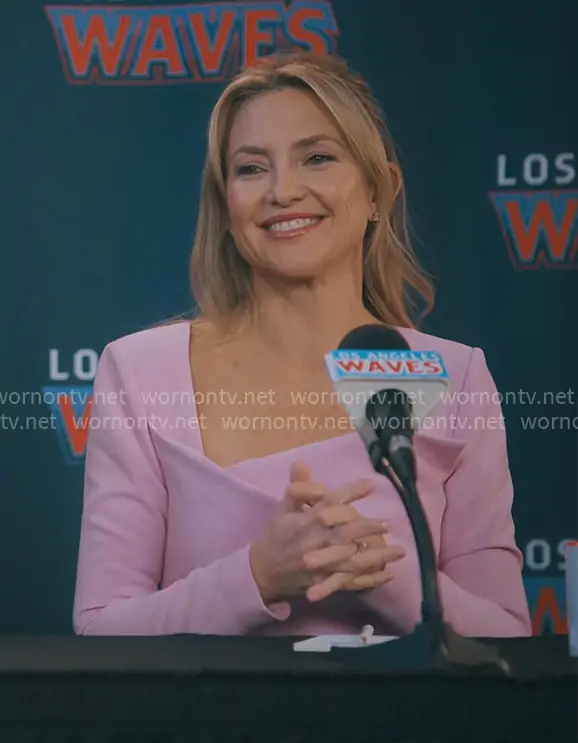 Isla Gordon (played by Kate Hudson) on Running Point on Netflix was spotted wearing this pink folded neckline dress on Running Point on episode 'New Coach Who Dis' (2x01) in Apr 2026. Isla's Dress is the Origami midi dress by Roland Mouret.